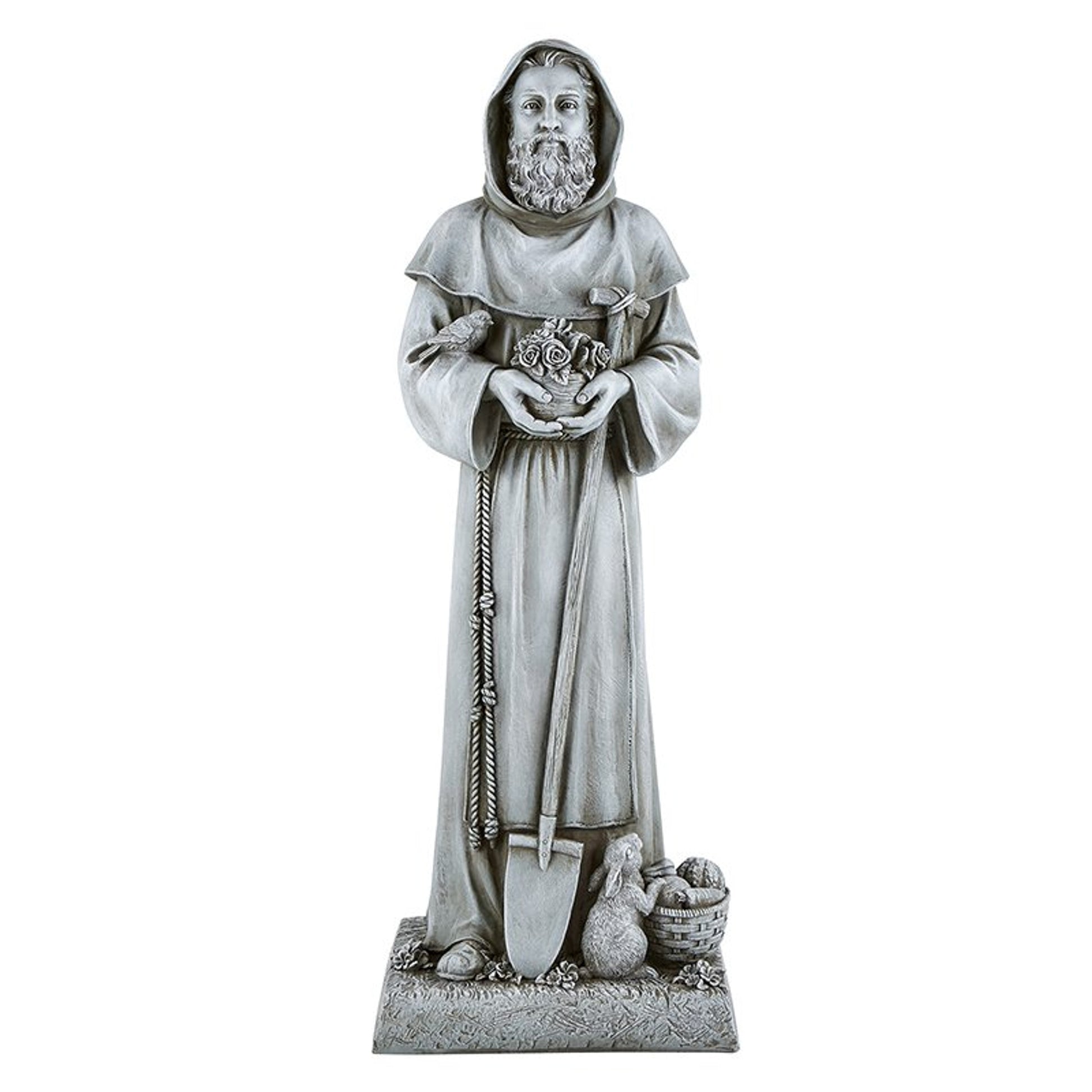 Revel in Michael Adams' depiction of Ireland's Saint Fiacre of Breuil, the Catholic Priest, abbot, hermit, and gardener of the seventh century who was famous for his sanctity and skill in curing infirmities. This Saint Fiacre Garden Statue is 24 inches tall and comes boxed.