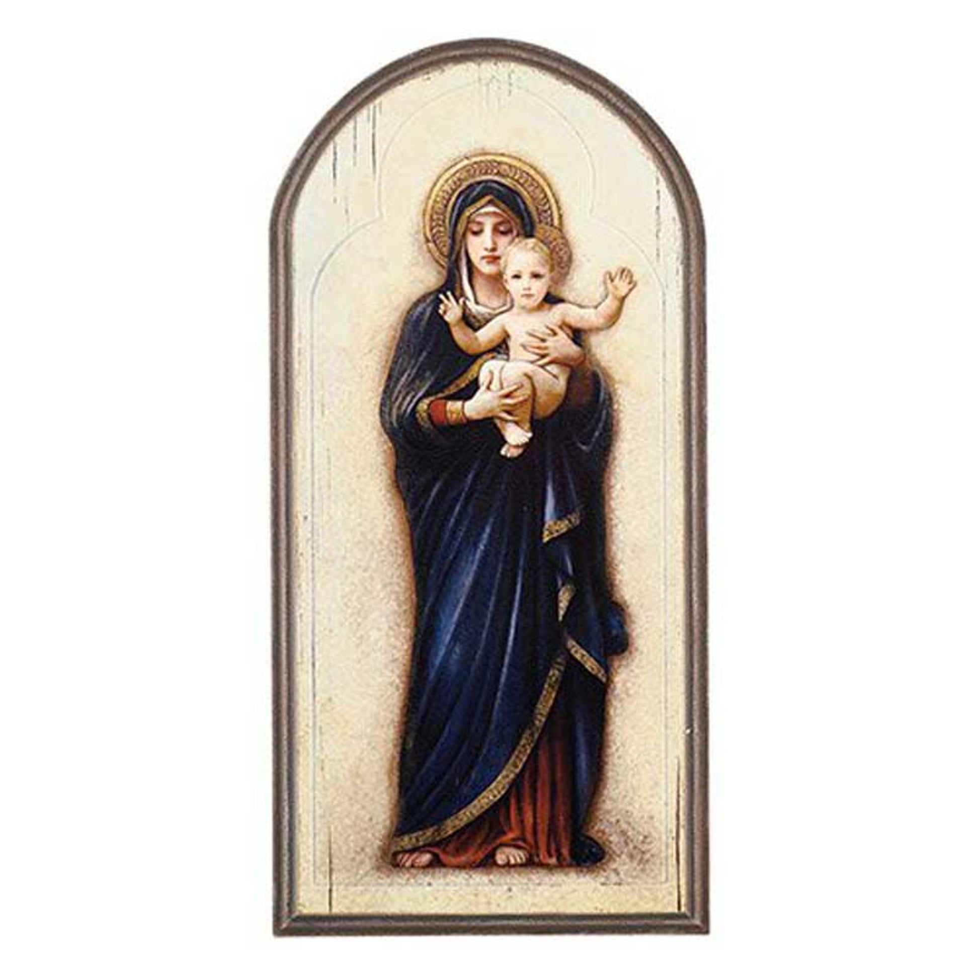Using the arched shape of a cathedral window, this carved relief image is perfect for any home. Features a keyhole hanger on the back.