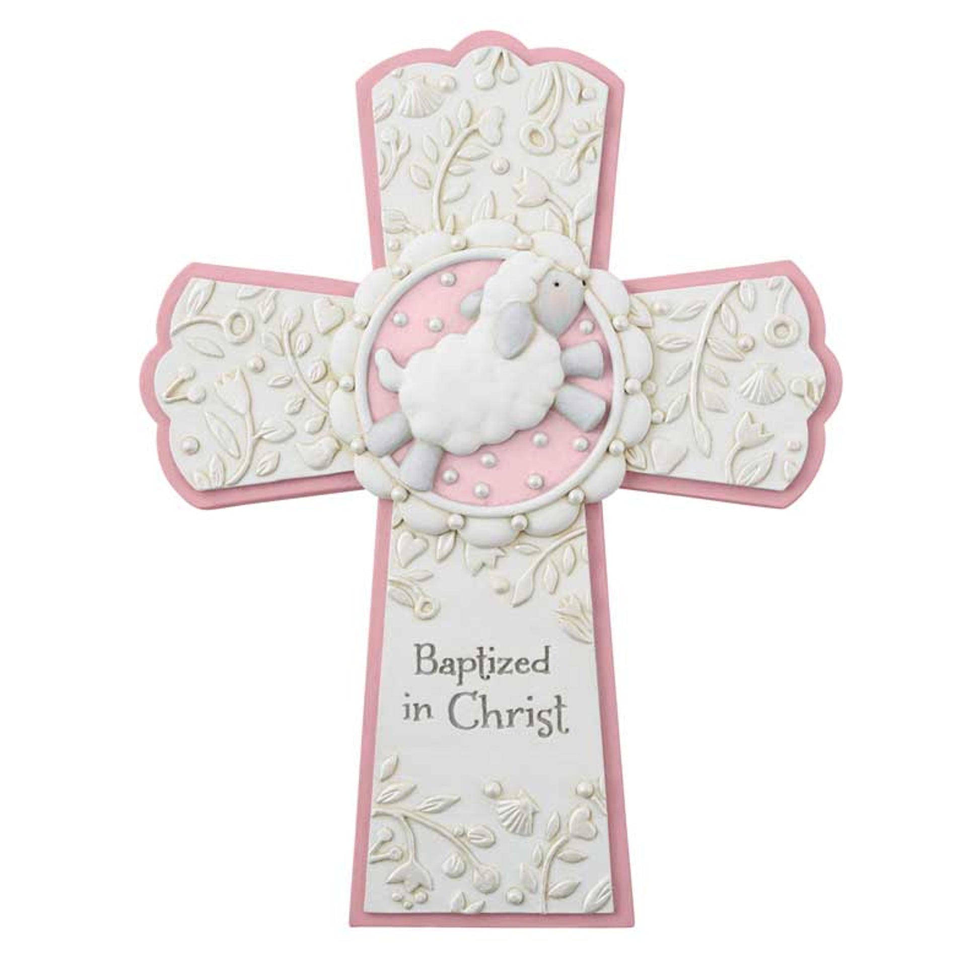 Delicate pink and blue hues and pearlized paint details enhance these exceptional baptism gifts from Avalon Gallery's Baptized in Christ Collection. This elegant, adorable and very cheerful collection is gift boxed for gifting on the infants special day. The pink Cross is made of polyresin with the image of a sheep and inscribed with the words - Baptized in Christ with a keyhole back for ease of hanging. This pink cross will add a touch of whimsical artistry to baby's room as it serves as a reminder of the blessings of her special day. Sold in quantities of 2 pieces per pack.