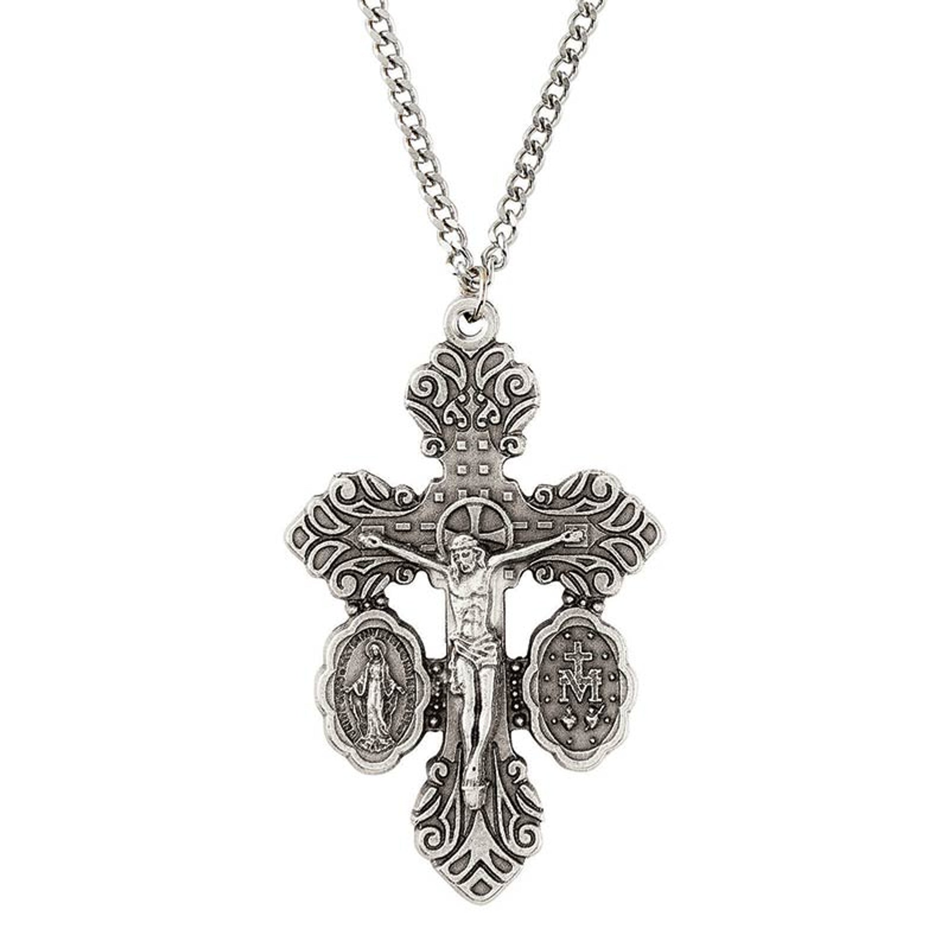 Blessed Mother and Miraculous Dual Medal Crucifix Pendant