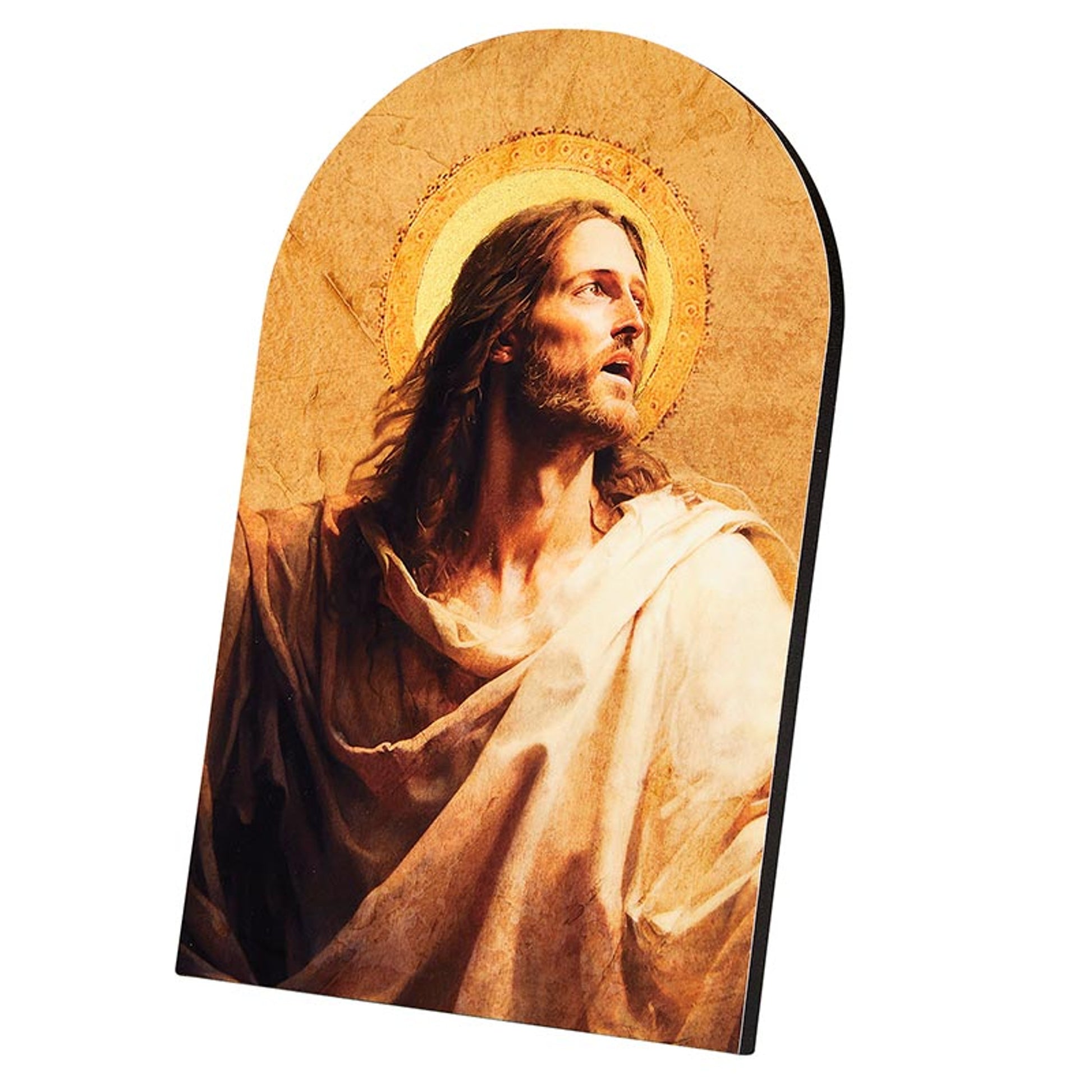 This Reflections of Divinity collection features exquisite paintings with rich gold tones that will captivate the hearts of all. Each plaque reflects the divine light, inspiring reverence and contemplation among all who behold them. Includes an easel for standing and a hole in the back for hanging.