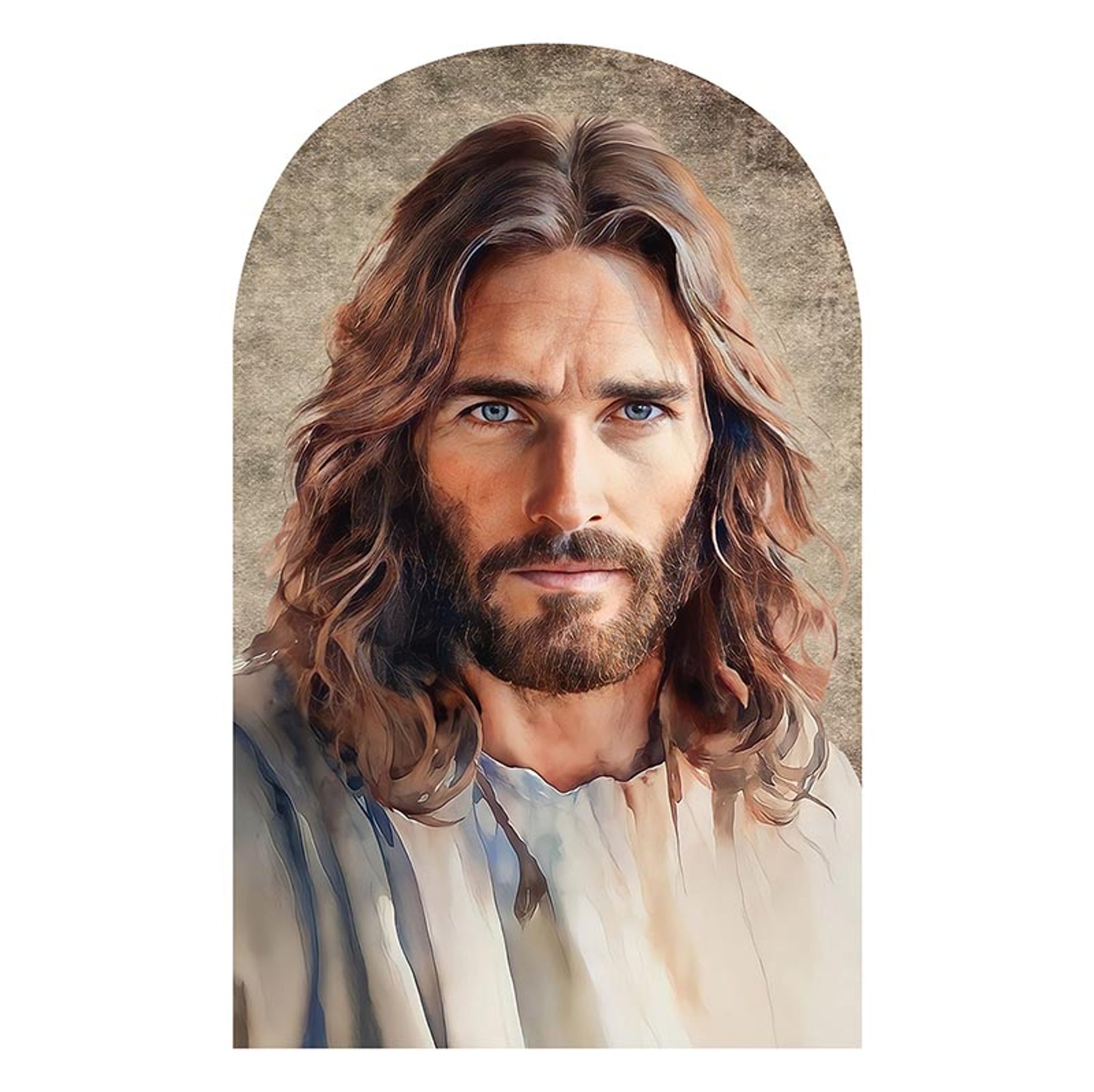 This arched plaque skillfully portrays Christ in a white robe, gazing at the viewer with an inviting expression that beckons, "Come, follow me." His serene demeanor and open posture convey a message of love and guidance, inviting us on a journey of faith.