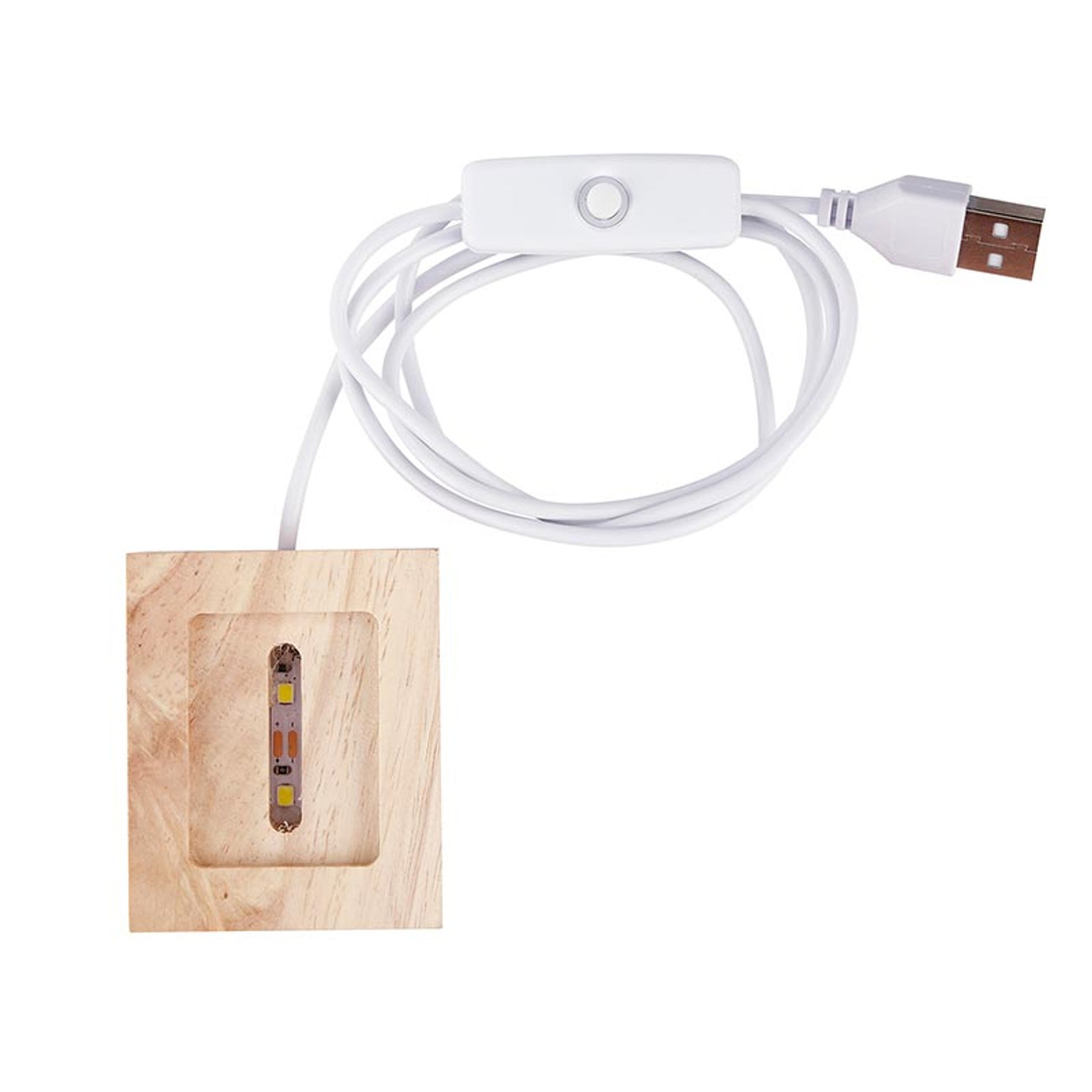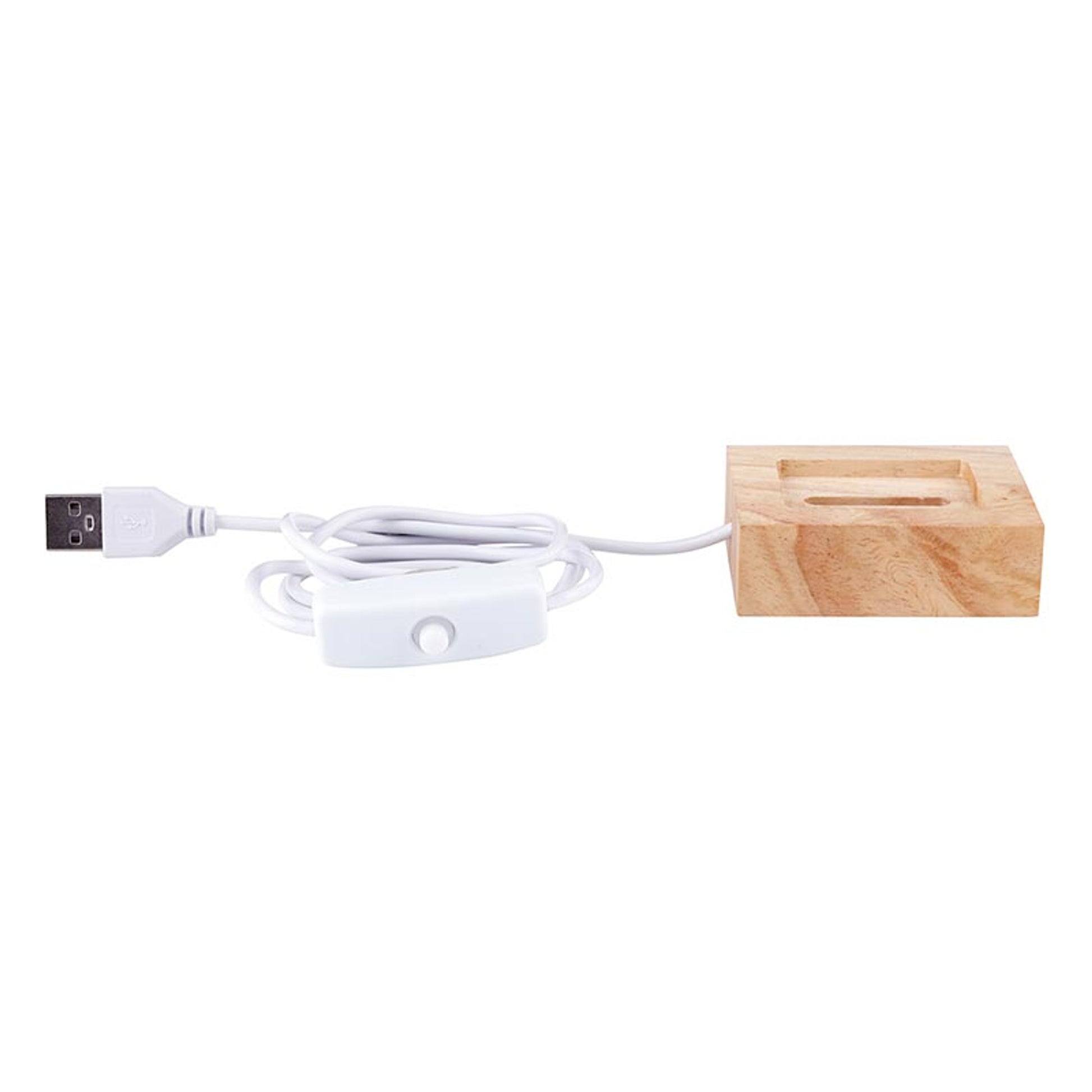 Illuminate your etched glass art with this sleek wooden light stand. Designed to perfectly complement our 1 1/2" W x 3 1/4" H etched glass stands, this stand features a built-in LED light to beautifully showcase your personalized engravings. Includes a 37" USB cord for easy power.