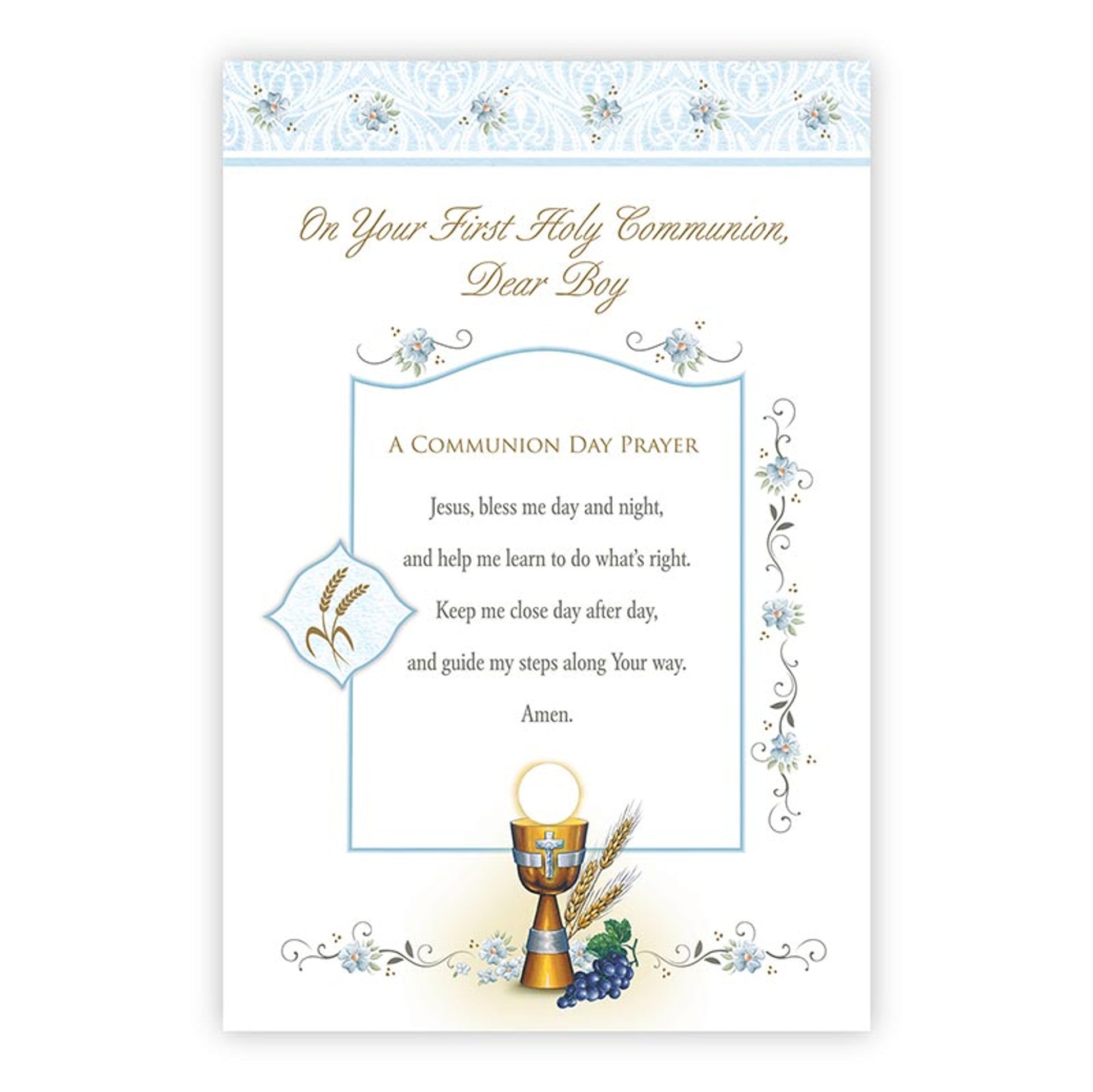 Alfred Mainzer presents classic Catholic greeting cards for commemorating the most special occasions.Italian art and classic greetings are the hallmark of Alfred Mainzer - each greeting card features beautiful art paired with heartfelt messaging or a thoughtful Bible verse.Inside card reads:We feel proud of you today, Dear Boy, and very happy, too, as you receive your First Communion and Our Savior comes to you. And since you're loved so very much, a special prayer is said, that He will bless and keep you safe through all the years ahead. - 1 Corinthians 11:24