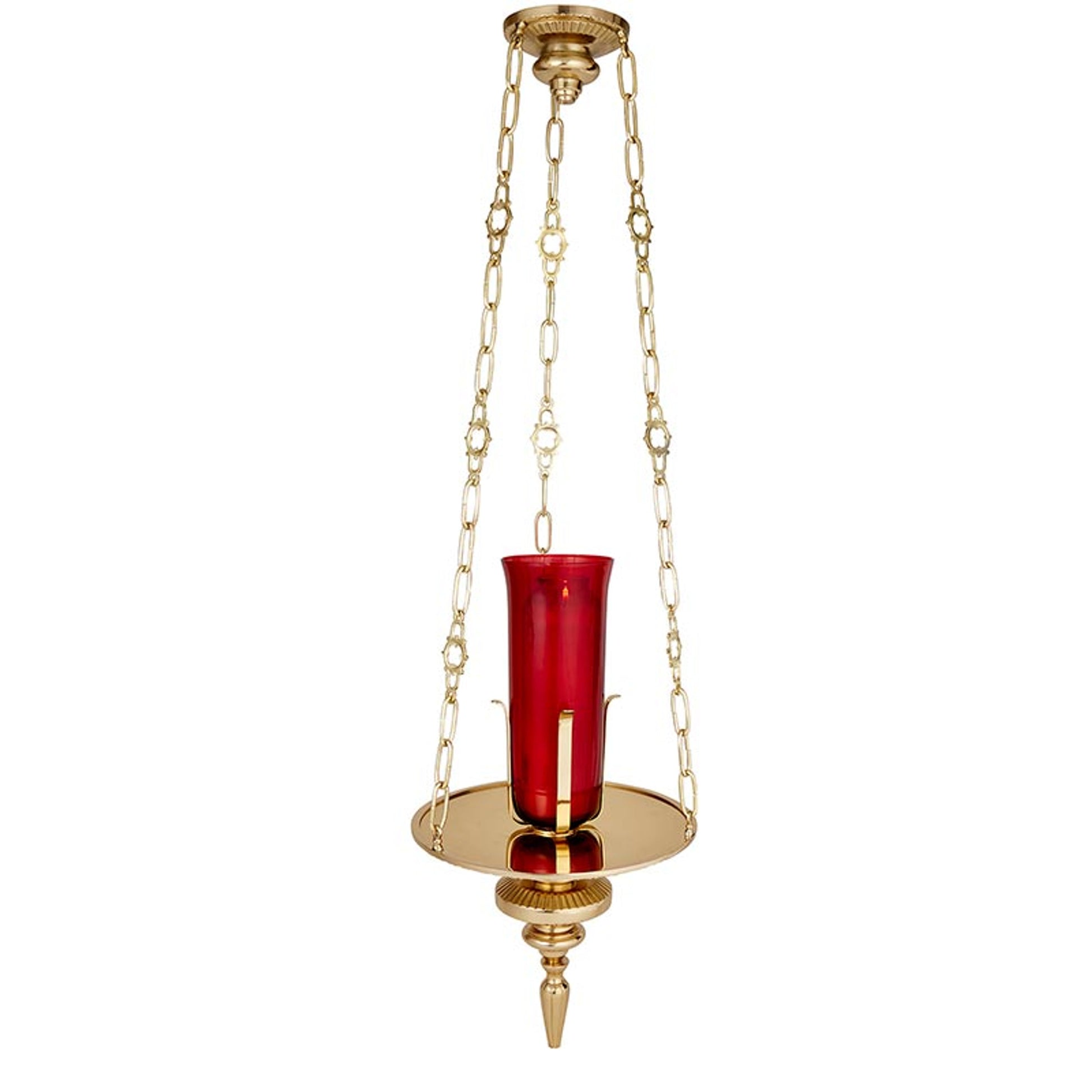 Since 1927, Sudbury Brass® has been a leader in church appointments and brassware and is renowned for producing the highest quality products using old world artistry combined with new and innovative designs.This Hanging Sanctuary Lamp is the perfect choice for chapels and sanctuaries. Featuring solid brass and a ruby glass, careful attention was given to every detail of fit and finish to ensure years of use. Ruby glass globe included, candles sold separatelyCare Instructions:Cleaning & Polishing Dust regularly with a soft, dry cotton or microfiber cloth. For deeper cleaning, use mild soap with lukewarm water; rinse and dry immediately. Occasionally polish with a soft silver-polishing cloth to restore shine. Never use abrasive pads, harsh polishes, or chemical cleaners.Tarnish Prevention Tarnish is natural over time; minimize it by storing items in an anti-tarnish cloth or airtight box. Avoid prolonged exposure to air, humidity, or direct sunlight. Do not leave liquids, food, or acidic substances on the surface for long.Storage & Handling Store in a cool, dry place. Wrap or place items separately to avoid scratches. Handle with clean, dry hands to prevent stains or dullness. For functional pieces (like trays or bowls), line with fabric or use liners to protect the plating.Note: With gentle cleaning, mindful storage, and occasional polishing, your brassware item will retain its brilliance for years.