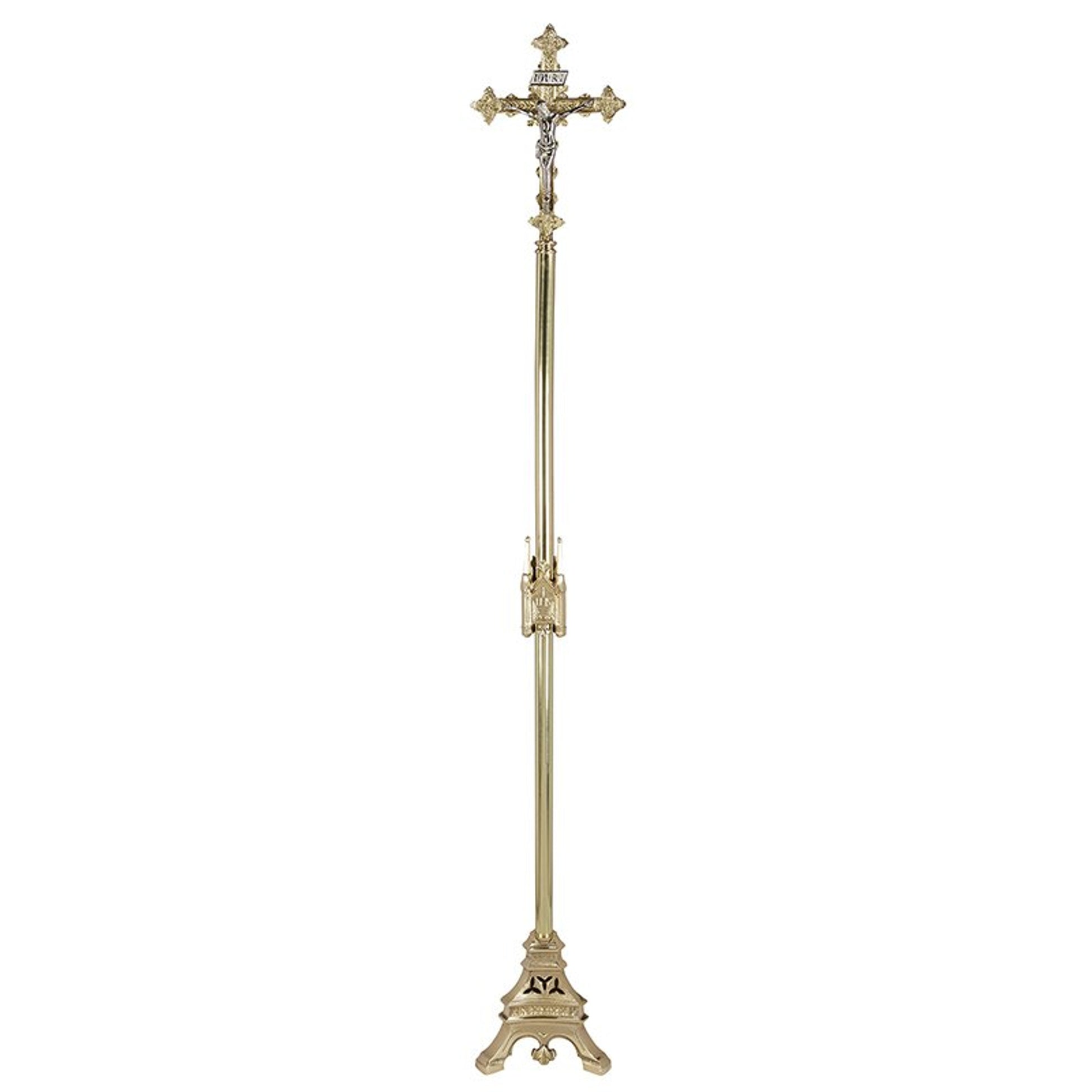 Sudbury Brass??????? offers a wide selection of the finest processional crucifix mounted on brass shafts and bases. From our Notre Dame Series comes this processional crucifix crafted of brass with a mounted crucifix featuring fine filigree work on a budded cross. Some assembly required.This item also fits on F3550 Processional Crucifix Stand sold separately.