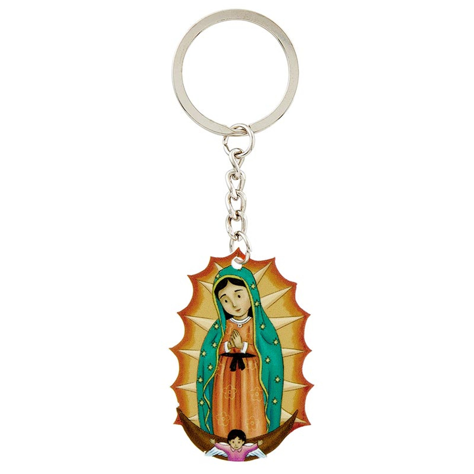 This keychain features a child-friendly illustration of Our Lady Guadalupe. Perfect for keys, backpacks, or purses, these keychains and great for children of all ages.