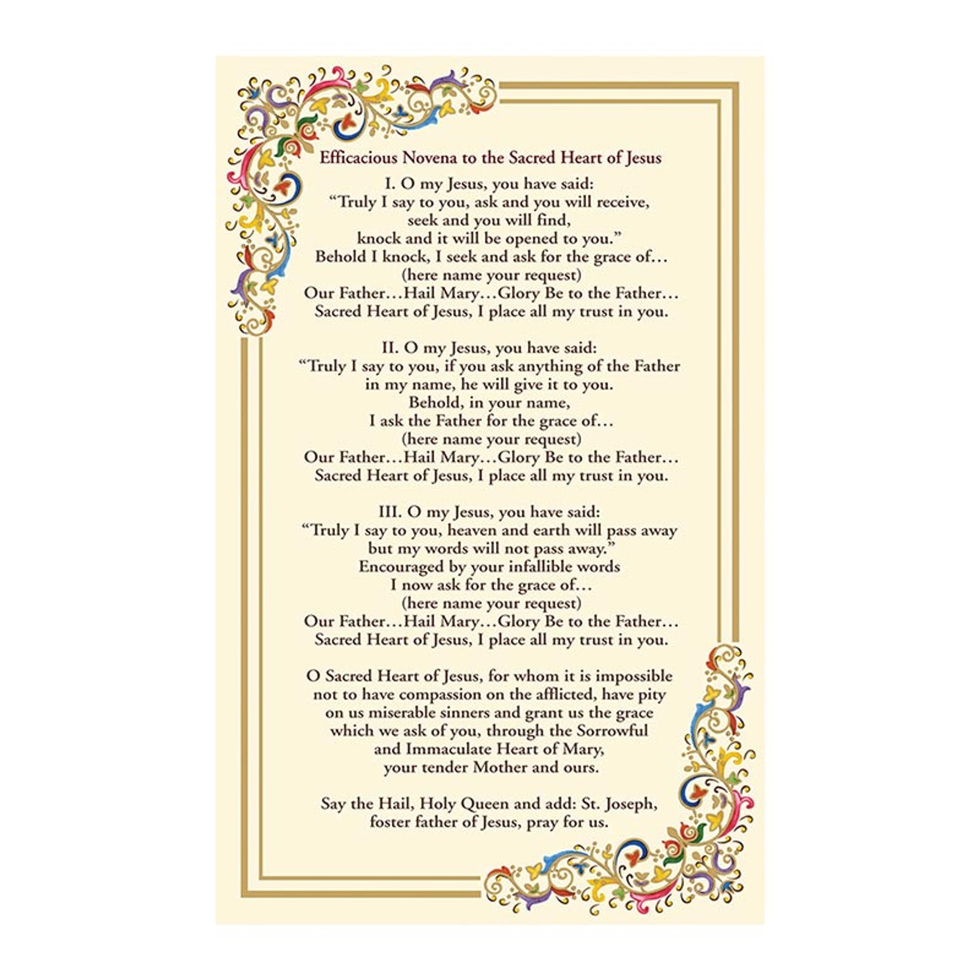 Sacred Heart Novena Florentine Holy Card - 25/PK