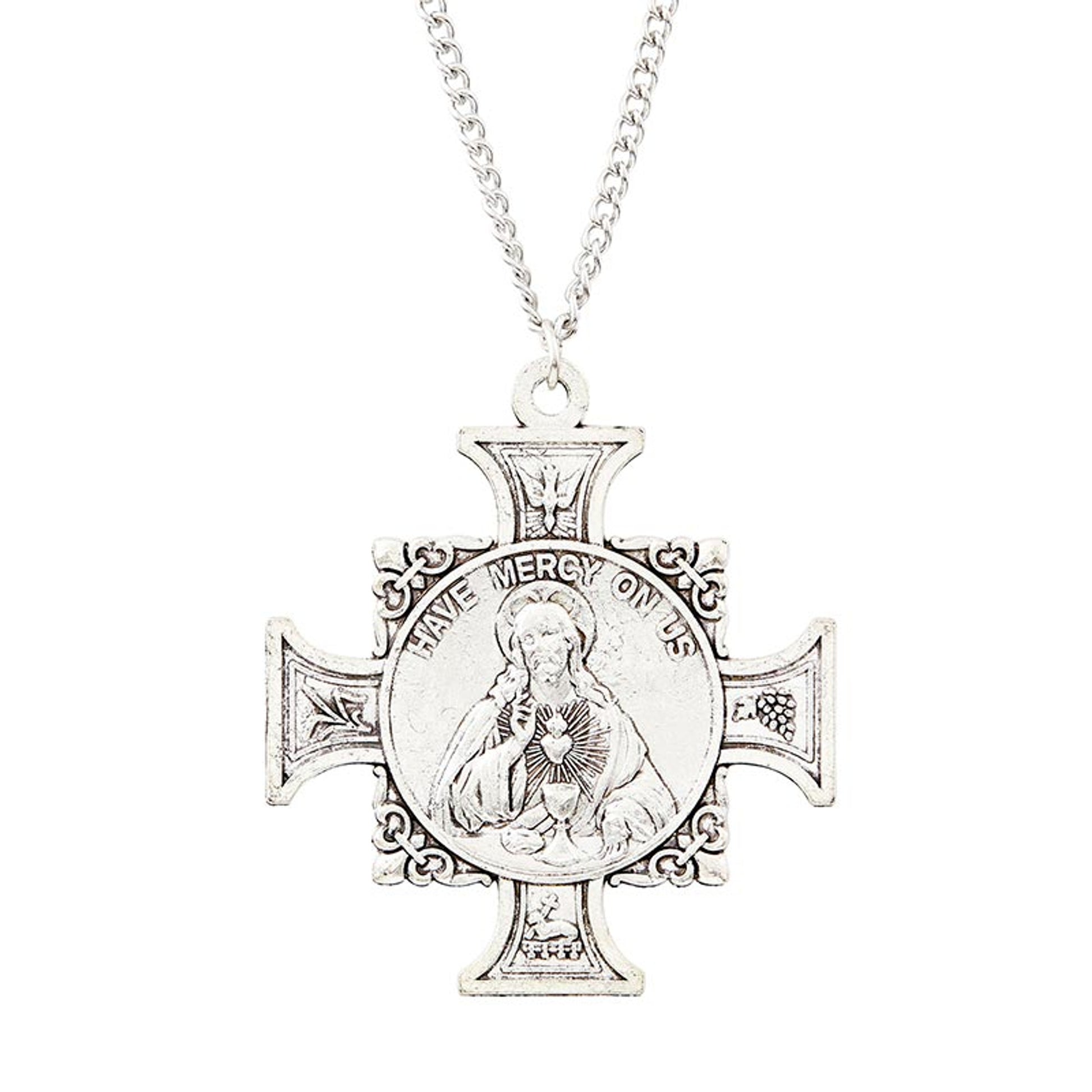 Introducing our exquisitely crafted detailed medals, perfect for proudly displaying your faith. The stunning design is sure to catch the eye and spark conversations. It comes with a 10" chain, allowing you to wear it as a necklace and keep your faith always close to your heart.