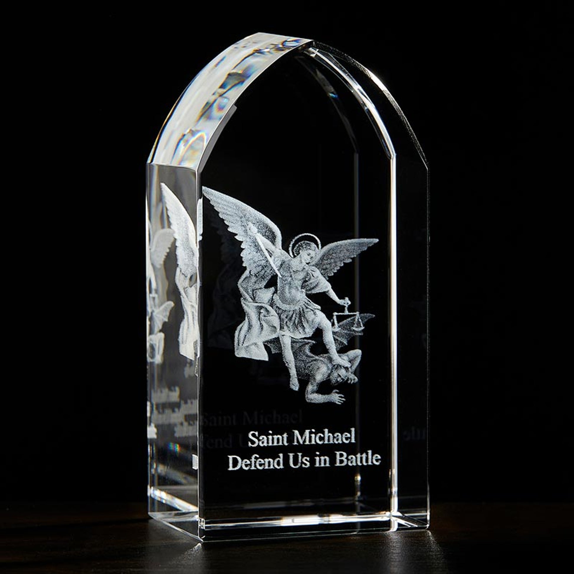 Saint Michael Etched Glass Stand