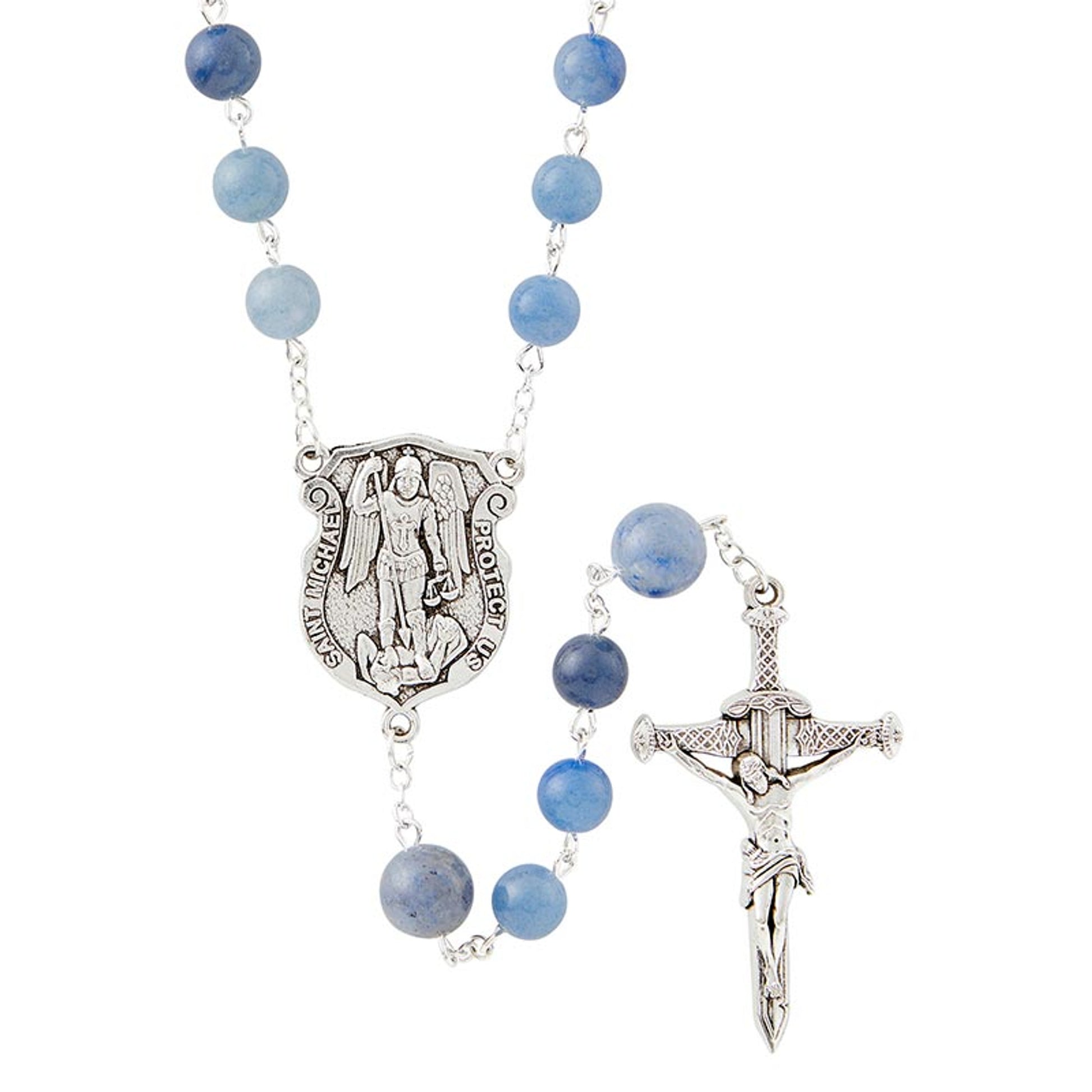 Material: 8mm Stone Beads, 10mm Stone Our Father Beads, Silver Plate