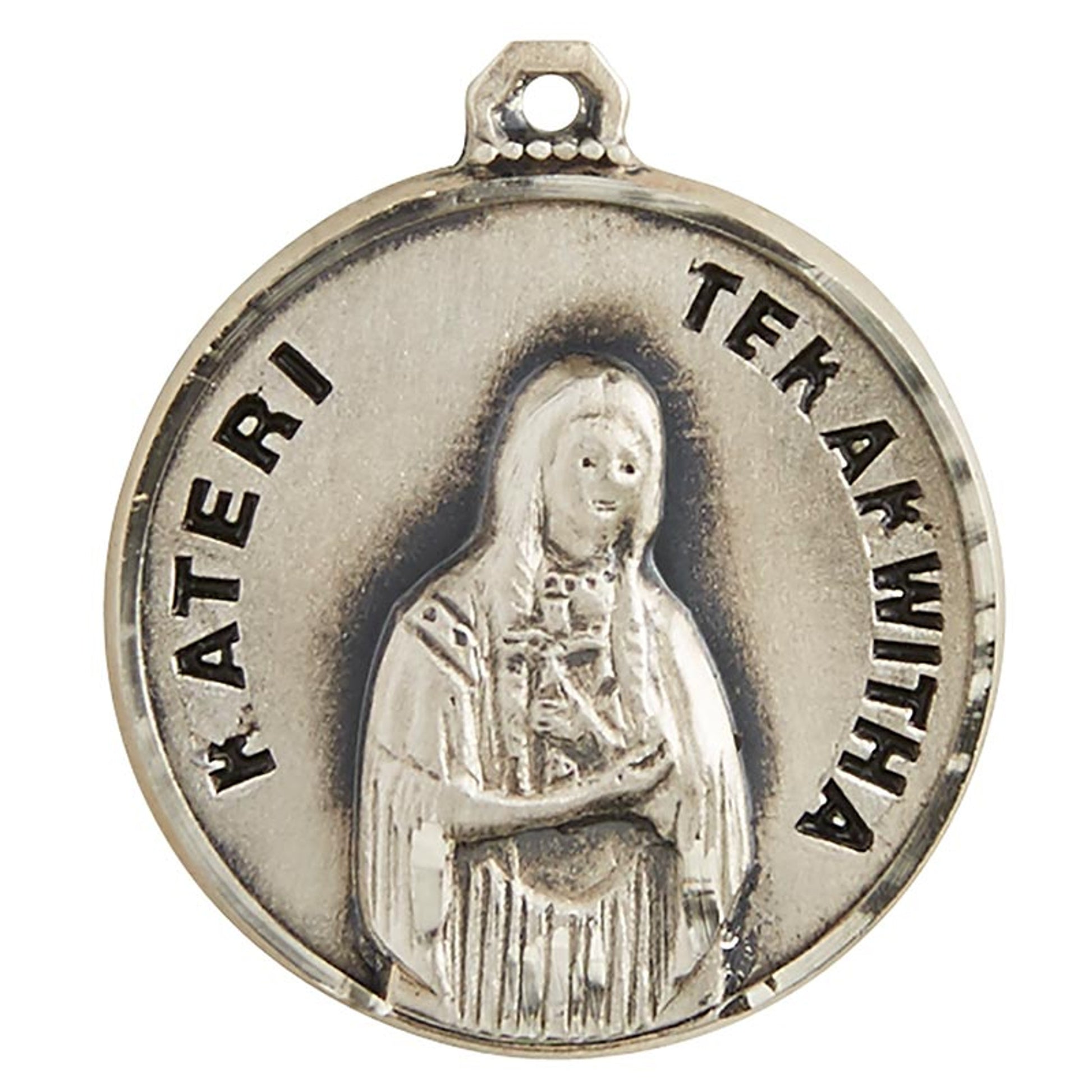 Crafted in sterling silver, this Saint Kateri medal is an ideal gift for a confirmation or RCIA candidate. Made in the USA, Creed® carefully creates this highly detailed image of the saint. This medal is sure to be a cherished gift for the one who receives it. Comes with a 18" chain.