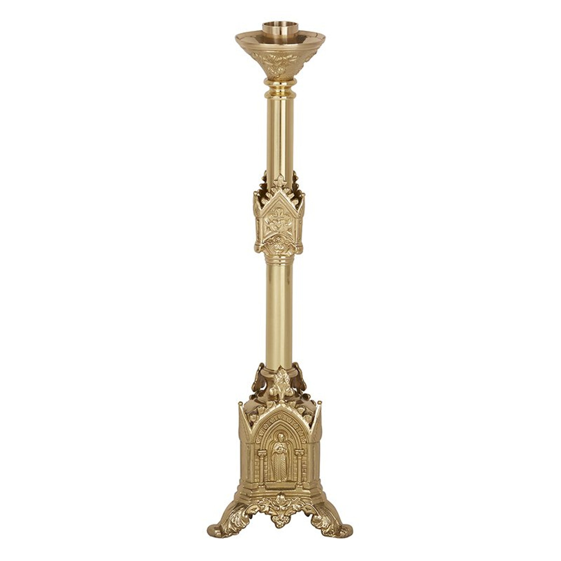 The Trinity Series 24" Altar Candlestick from Sudbury Brass is a very traditional and lovely design. Hand casted from solid brass with a high polished finished, each piece is extremely intricate and detailed.Care Instructions:Cleaning & Polishing Dust regularly with a soft, dry cotton or microfiber cloth. For deeper cleaning, use mild soap with lukewarm water; rinse and dry immediately. Occasionally polish with a soft silver-polishing cloth to restore shine. Never use abrasive pads, harsh polishes, or chemical cleaners.Tarnish Prevention Tarnish is natural over time; minimize it by storing items in an anti-tarnish cloth or airtight box. Avoid prolonged exposure to air, humidity, or direct sunlight. Do not leave liquids, food, or acidic substances on the surface for long.Storage & Handling Store in a cool, dry place. Wrap or place items separately to avoid scratches. Handle with clean, dry hands to prevent stains or dullness. For functional pieces (like trays or bowls), line with fabric or use liners to protect the plating.Note: With gentle cleaning, mindful storage, and occasional polishing, your brassware item will retain its brilliance for years.